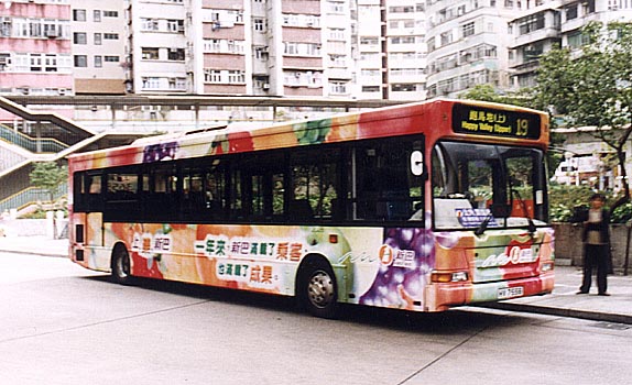 Dennis Dart SLF Photographs (Page 23)The photographs and text below belong to Anthony Lui. You may set it as the wallpaper in your PC. However, you must seek Anthony Lui's permission and state the source before you place any of the pictures on the WWW or show it in public. Self-discipline is expected as I do not put my name in the pictures so as to retain its originality. NWFB Dart SLF celebrating 1st AnniversaryA Dart SLF (2028, HV7556) and a Trident (1168) celebrated the first anniversary of the company. both of them were painted in livery with fruits. The above photographs were taken on 15 January 2000 and the photograph below was taken on 11 January 2000 at Sau Kei Wan Bus Terminus. Go to Page 24 Return to Page 22 Return to Dennis Dart Page created: 9 July 2000 Last updated: 31 January 2001 |