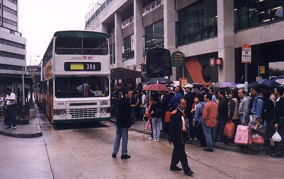 People lined up and got on DA20 at Chai Wan MTR Station.