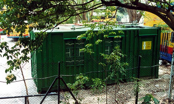 Trolleybus, diesel generator and overhead cables in Ocean Park bus park. On 23 November 2001, Anthony was kindly escorted by Citybus engineers to the depot for close-up photos and a detailed introduction of the vehicle.