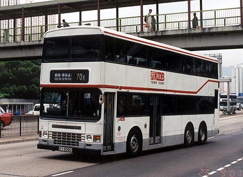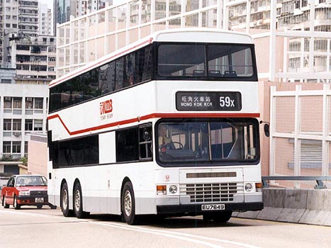 After the successful trials of DDA1806, KMB ordered 82 DDA1811s between March and December 1991 and they entered service in 1991 and 1992. These buses have been deployed to different routes, included the newly established business commuter route 300 at that time. The seats have been changed to vinyl seats in 3+2 layout. This picture shows AD3 (EU7248, DDA1811-664) was heading Central in a sunny afternoon in 1993. The picture was taken from a tram passing Hennesey Road, Wan Chai.